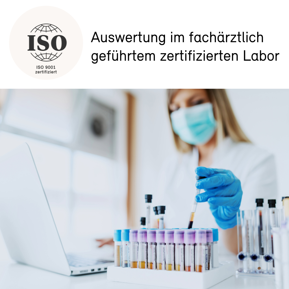 Geben Sie die gut verschlossenen Probenröhrchen in das Rücksendekuvert und senden Sie es ausreichend frankiert an uns zurück.