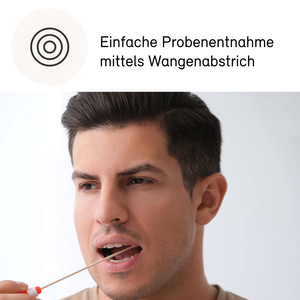 DNA-Speicheltest zur Selbstentnahme und anschließender Auswertung im ISO zertifizierten Labor.